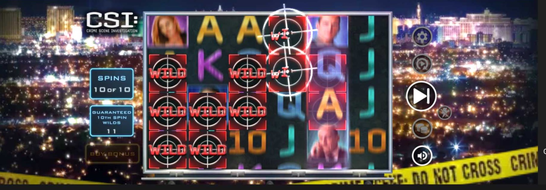 CSI: Crime Scene Investigation is a 6×4 grid with 25 paylines, paying left to right on consecutive reels starting from the leftmost. Standard stuff so far. But this game has a few tricks that got me pretty psyched, only to leave me a little let down.