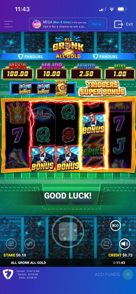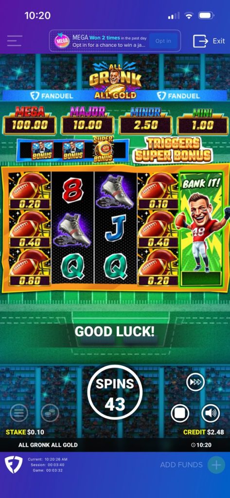 The Pats are slight underdogs against the Seahawks in Super Bowl LX, just as FanDuel Casino customers are slight underdogs in every spin of All Gronk All Gold. Much like Gronk attempting the “Kick of Destiny,” this game is lined up for success, but it could use a little straightening out on one or two features.