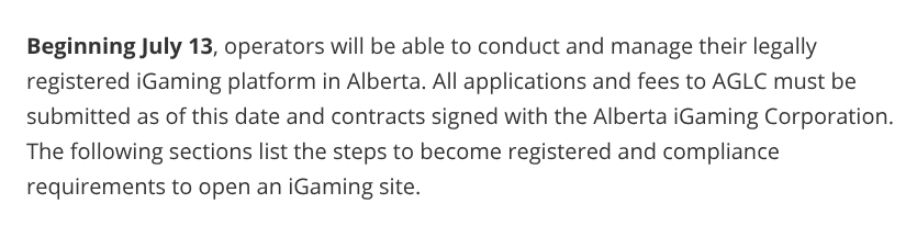 Online casino gambling will launch in Alberta on July 13, according to an update provided by the Alberta Gaming, Liquor and Cannabis (AGLC) commission website.