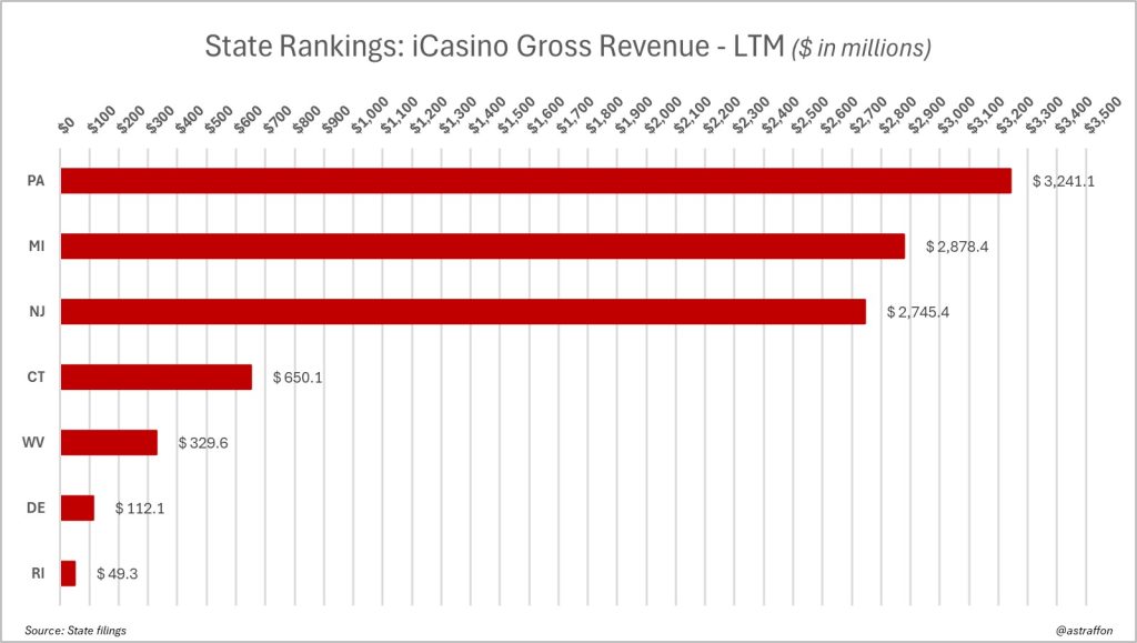 - New records are routinely getting set in multiple jurisdictions as Pennsylvania leads the U.S. iCasino market; in the PA market, operators have generated $3.24 billion in gross gaming revenue over the last 12 months;