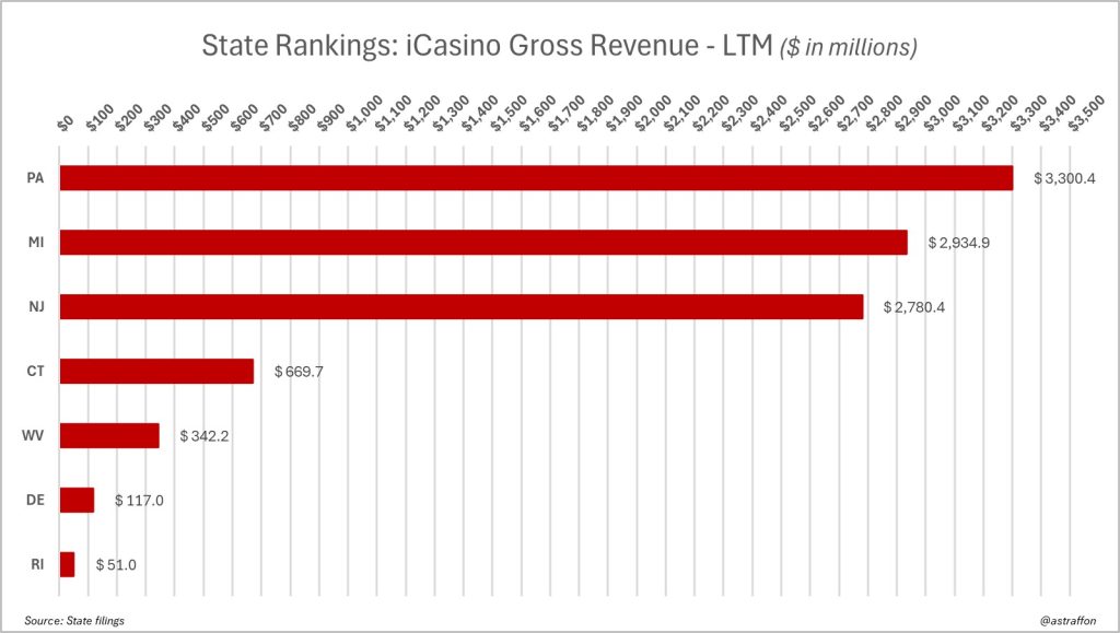 - New records are routinely getting set in multiple jurisdictions as Pennsylvania leads the U.S. iCasino market; in the PA market, operators have generated $3.24 billion in gross gaming revenue over the last 12 months;