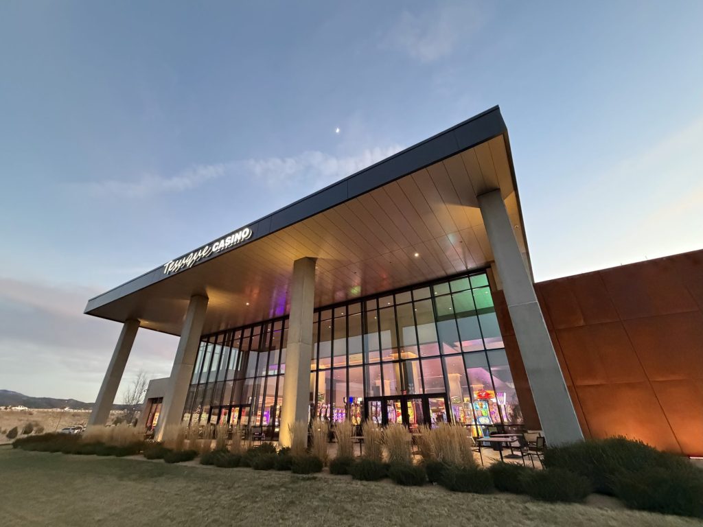 Tesuque is the newest casino in New Mexico, opening in late-2018 to replace the former Camel Rock Casino. I didn’t end up playing there during this early-evening stop, but I snapped some great photos of the casino as the sun was setting.